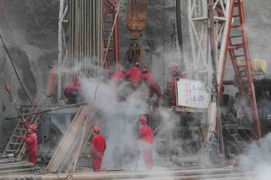 2014年11月9日,陜西地質(zhì)工程總公司陜北經(jīng)理部順利完成咸陽(yáng)海泉灣有限公司地?zé)峋S修工程。在進(jìn)行抽水實(shí)驗(yàn)后,井口出水溫度98°,水量80m³/h,達(dá)到了原井使用技術(shù)要求,獲得了業(yè)主的一致好評(píng)和信任。11月10日,與甲方的第二口井維修合同已基本敲定。