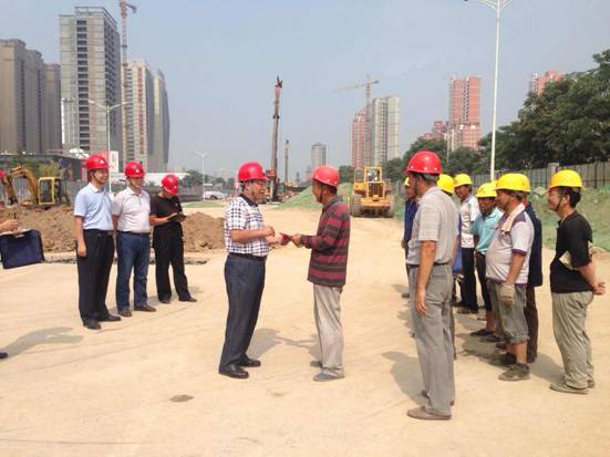 白林科一行頂著烈日,深入陜西地質(zhì)工程總公司西安地鐵一號線延伸段上林路站樁基礎項目施工現(xiàn)場,對大家高溫堅持施工生產(chǎn),搶時間,促進度,以實際行動弘揚地質(zhì)人“四特別”精神給予充分肯定,并為他們送上了慰問金,把總公司領導的問候和關懷傳遞給每位員工。