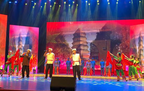 晚會在歌舞《我和我的祖國》中拉開帷幕。我公司參演的節(jié)目情景歌舞《山丹丹開花紅艷艷》,熱情謳歌革命先烈,緬懷革命先烈,表達出對革命先烈的敬仰之情,現(xiàn)場掌聲、喝彩聲不斷,氣氛十分熱烈。