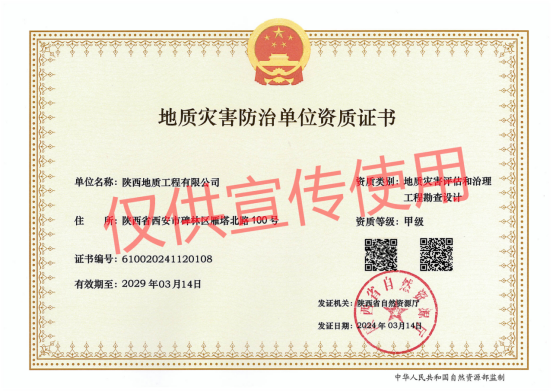 近日,自然資源廳發(fā)布2024年度陜西省第一批地質災害防治單位資質審批結果公告,公司地質災害治理工程施工、地質災害評估和治理工程勘查設計資質甲級延續(xù)成功獲批。
